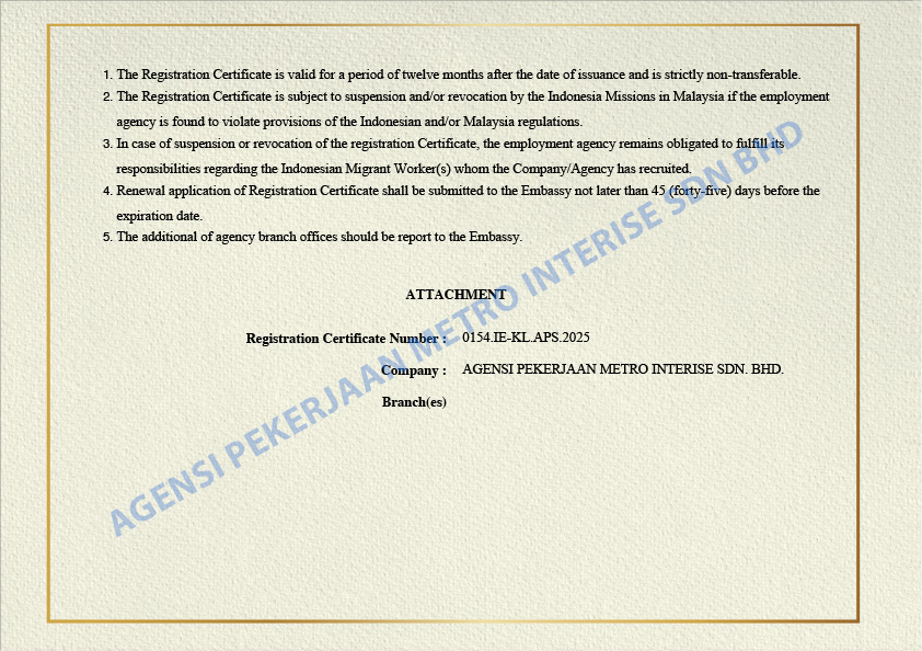 At our foreign housemaid & worker agency in Malaysia, we take great pride in our successful track record and numerous satisfied customers, which reflect the high standards we hold ourselves and our workforce to. We are committed to providing you with the best foreign housemaid services and foreign worker that you truly deserve. Our services cover the following: